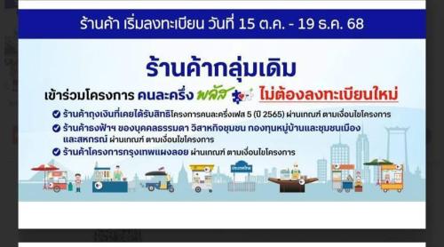 ** ร้านค้า เริ่มลงทะเบียน วันที่ 15 ต.ค -19 ธ.ค. 68