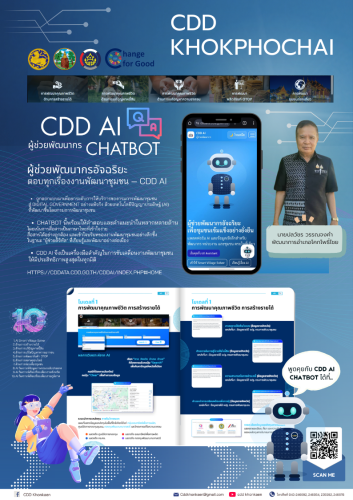 พช.โคกโพธิ์ไชย : ประชาสัมพันธ์ CDD Ai. แพลตฟอร์มผู้ช่วยพัฒนากรอัจฉริยะ (Intelligent Development Assistant Platform) ที่รวมศูนย์ข้อมูลเชิงลึก เครื่องมือวิเคราะห์ที่ชาญฉลาด และแนวทางการพัฒนาที่ครอบคลุม เพื่อสนับสนุนนักพัฒนาชุมชน ผู้บริหาร และประชาชนในพื้นที่ ให้สามารถเข้าถึงข้อมูล วางแผน และตัดสินใจเพื่อการพัฒนาได้อย่างรวดเร็วและแม่นยำ