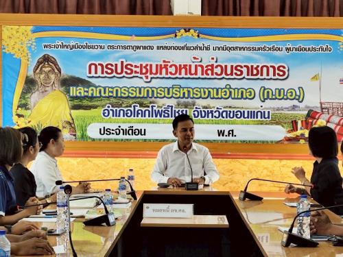 ** นางจิรภา เชื้อดวงผุย พัฒนาการจังหวัดขอนแก่น มอบหมายให้ นางจันทิรา นัดทะยาย ผู้อำนวยการกลุ่มงานประสานและสนับสนุนการบริหารงานพัฒนาชุมชน พร้อมด้วย นางจันทรนันท์ สุดจริง ผู้อำนวยการกลุ่มงานสารสนเทศการพัฒนาชุมชน นางสุพรรณี โพธิ์จุมพล นว.พช.ชำนาญการพิเศษ ผู้ช่วยกลุ่มงานสารสนเทศการพัฒนาชุมชน ลงพื้นที่อำเภอโคกโพธิ์ไชย จังหวัดขอนแก่น เพื่อติดตามและสนับสนุนการบริหารจัดการหนี้ค้างชำระ กองทุนพัฒนาบทบาทสตรี (คลินิกแก้หนี้สตรี คุณพร้อมจ่าย เราพร้อมจบ DEBT Clinic By CDK) และติดตามการดำเนินงานโครงการแก้ไขปัญหาความยากจน (กข.คจ.) โดยมี นายบุญรอด ขาวเขาอ้อ นายอำเภอโคกโพธิ์ไชย พร้อมด้วย นางภัทรณรินทร์ นิลวดีพุฒิพัชร พัฒนาการอำเภอโคกโพธิ์ไชย และเจ้าหน้าที่สำนักงานพัฒนาชุมชนอำเภอ ให้การต้อนรับ